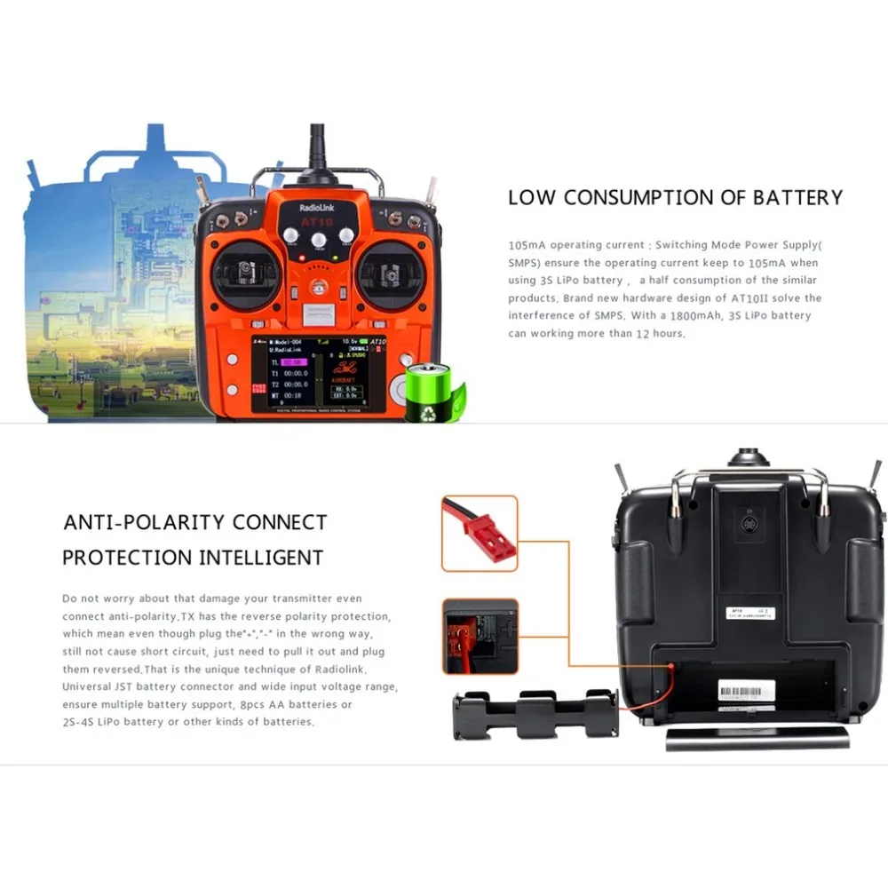 SALE Radiolink AT10II 2.4G 12CH Transmitter Remote Control with R12DS Receiver RPM-01 Voltage Return Mod